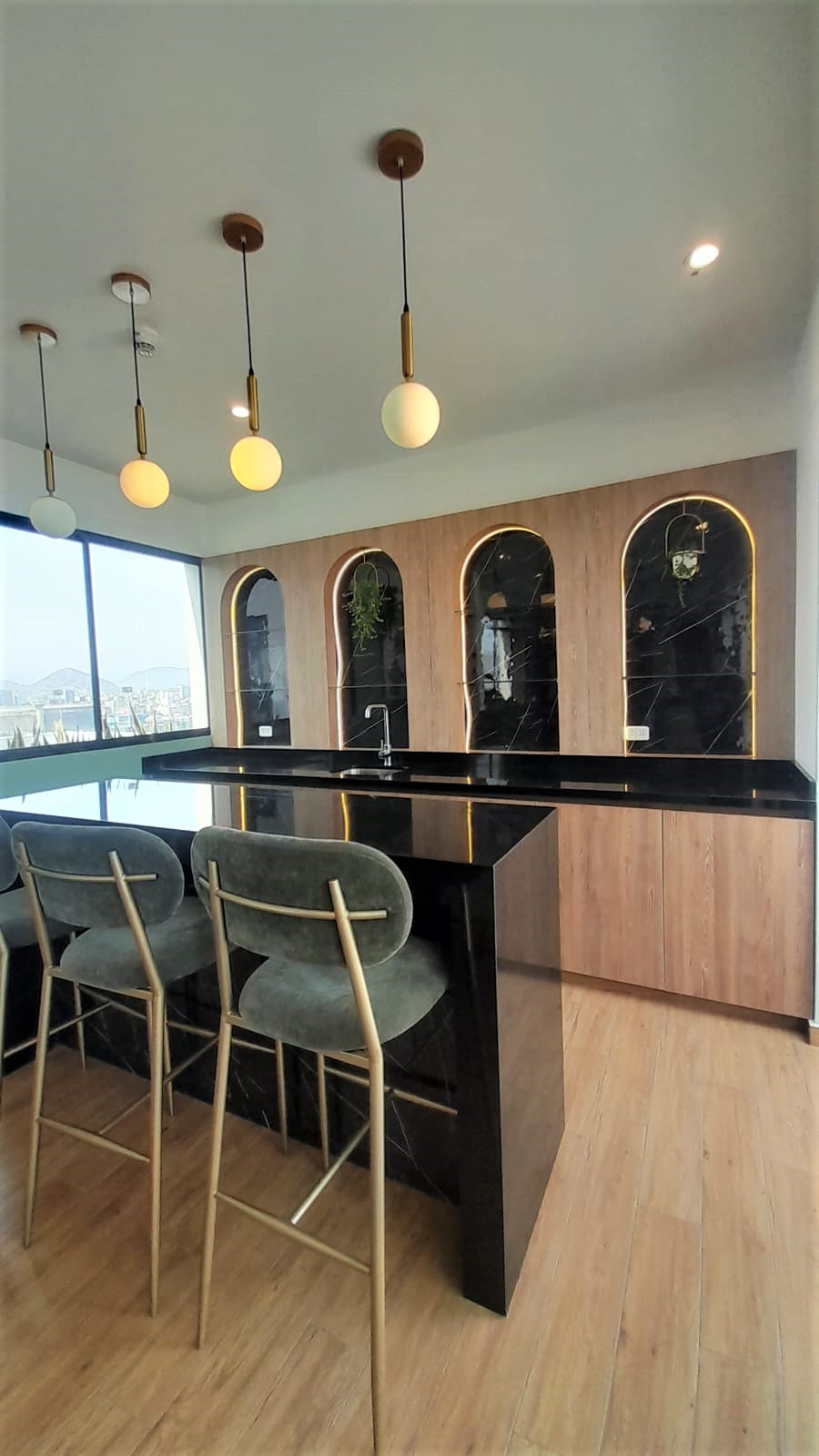✅Sala-comedor con acabados de primera y una cocina de concepto moderno equipada con muebles de melamina y tablero de Granito de alto impacto. La cocina se entrega con equipos de REGALO como la cocina encimera, el horno, y la campana extractora.